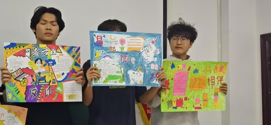 妙笔书卷荟,巧手传书香。4月18日,以“好书推荐”“阅读心得”“方法技巧”为主题开展手抄报绘制活动,手抄报内容涵盖《百年孤独》《三体》等经典书籍的深度解析与实用阅读技巧。展示期间,同学们相互交流学习,拓宽了阅读视野,提高了团队协作、文字编辑和绘画排版能力,营造出浓厚的阅读氛围。