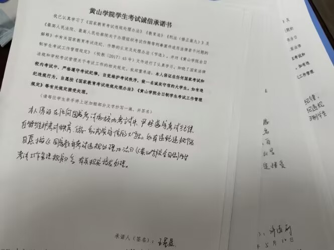 自我承诺,强化责任。组织学生签订签订《太阳tyc151cc学生考试诚信承诺书》,引导学生深刻认识诚信应考的重要意义,增强责任感,自觉做到行为规范。