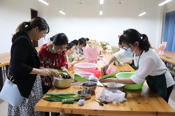 浓情六月,粽叶飘香。为了让教师切身体会到手工制作的快乐,太阳集团tyc151cc全体女教工参加了该活动。活动设置了包粽子和做香囊两个环节,大家其乐融融。活动过程中,大家也会互相请教,相互协作,都乐在其中。最终,每个人都完成了自己的作品。