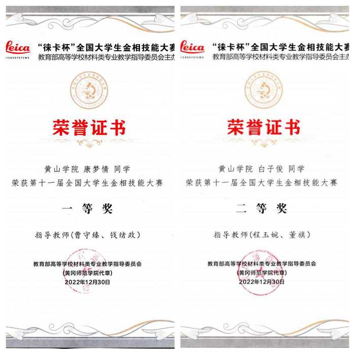 近日,第十一届全国大学生金相技能大赛决赛落下帷幕,共计414所高校的417支代表队(含三峡大学、湖北理工学院和咸阳师范学院的3支编外留学生代表队)3758名选手参加了复赛和决赛。我校4名参赛选手全部获得赛事奖项,其中康梦情斩获赛事一等奖,白子俊获得赛事二等奖,崔世杰、金鑫获得赛事三等奖。