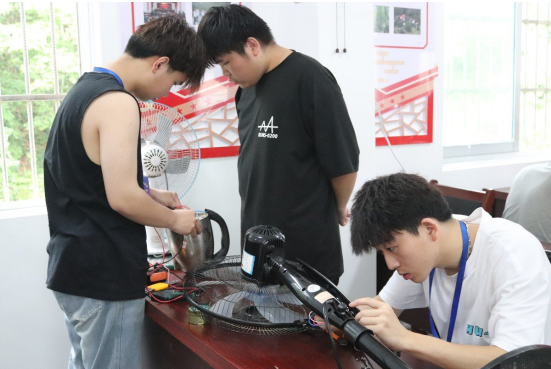 2023年5月27日,太阳集团tyc151cc智能家居创客社团在青年党员教师的带领下赴安徽省祁门县永胜村开展家电维修服务活动。