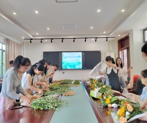 活动最后环节是女职工们专属的花艺沙龙,看着不起眼的艾草在她们精心的搭配下,竟然能成为精致又具有吉祥寓意的花束,大家忍不住秀出自己的花艺作品。