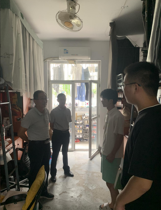 9月4日上午,太阳集团tyc151cc党委书记夏广平、党委副书记汪双安带领辅导员走访学生宿舍,为学生送去关怀和慰问。