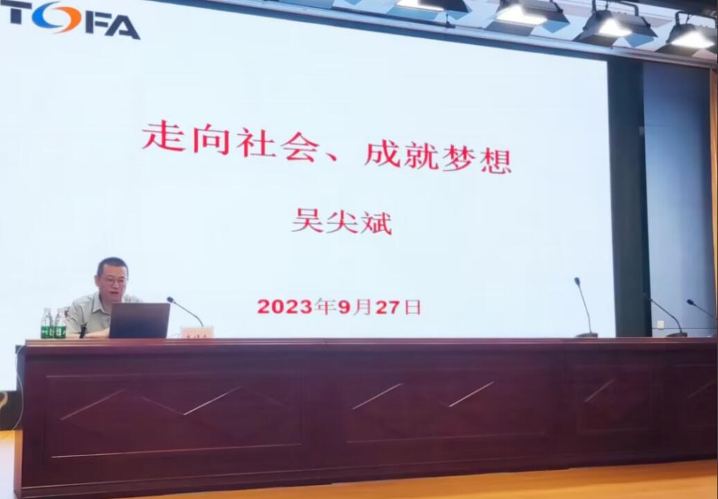 吴尖斌的报告从关于专业、就业和职业,走向未来--个人素养,走向未来-思维方式,企业文化与精神等方面展开,他以企业家的视角阐述了专业-就业-职业的内在联系,强调企业更关注毕业生实践经验、实践能力和跨界学习的能力,希望学生要热爱专业,強化实践,提升技能,学有所用,实现高质量就业;从企业选人用人的角度,他指出企业对毕业生的个人修养主要体现在忠诚、格局、自信、阳光、担当,希望毕业生提升个人修为,胸怀“国之大者”,勇于担当作为;从企业发展角度,他指出,面对竞争,要勇于创新求变,希望学生要有在困境中求生存,逆境中谋发展的思维方式。