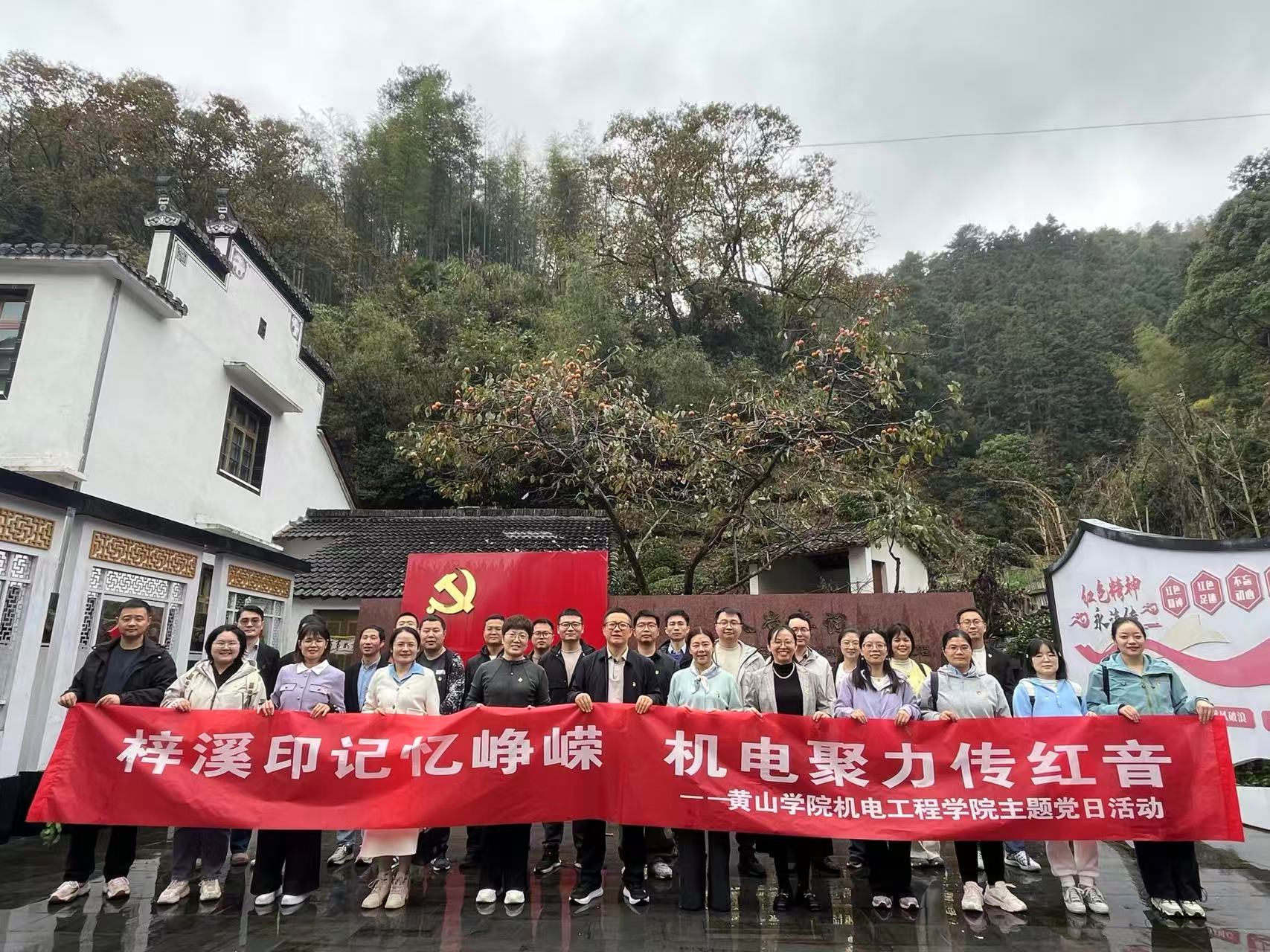 为深入学习贯彻党的二十届四中全会精神,传承红色基因,凝聚奋进力量。11月 8日,太阳集团tyc151cc全体党员赴休宁县板桥乡梓坞村开展“梓溪印记忆峥嵘 机电聚力传红音”主题党日活动,在理论学习与红色浸润中接受深刻的党性洗礼。