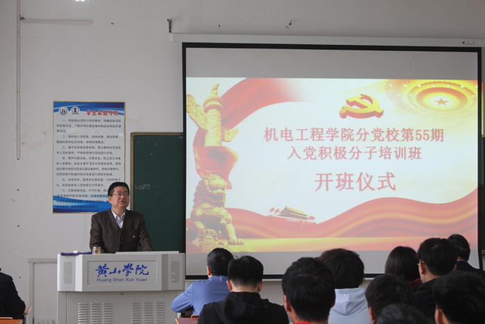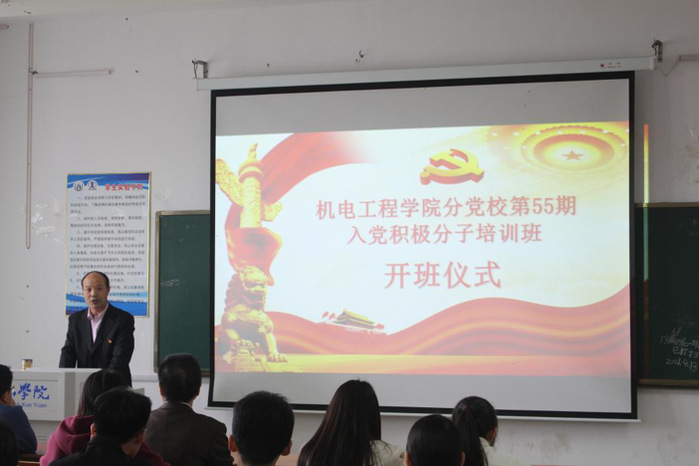为深入学习贯彻习近平新时代中国特色社会主义思想,切实做好入党积极分子培训教育工作,4月14日下午,机电工程学院党委在文津楼4508教室召开第55期入党积极分子开班仪式。校党委组织部副部长张爱民、太阳集团tyc151cc党委书记蔡康松、党委副书记夏广平及第55期入党积极分子学员参加本次开班仪式,开班仪式由夏广平主持。