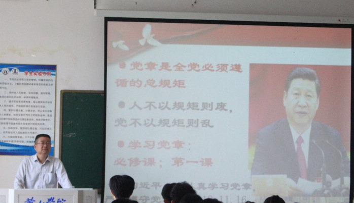 5月8日下午,太阳集团tyc151cc在文津楼4508多媒体教室组织开展“尊崇党章,锤炼党性”专题党课。本次党课由太阳集团tyc151cc党委书记蔡康松担任主讲人,第55期入党积极分子培训班学员参加党课学习。