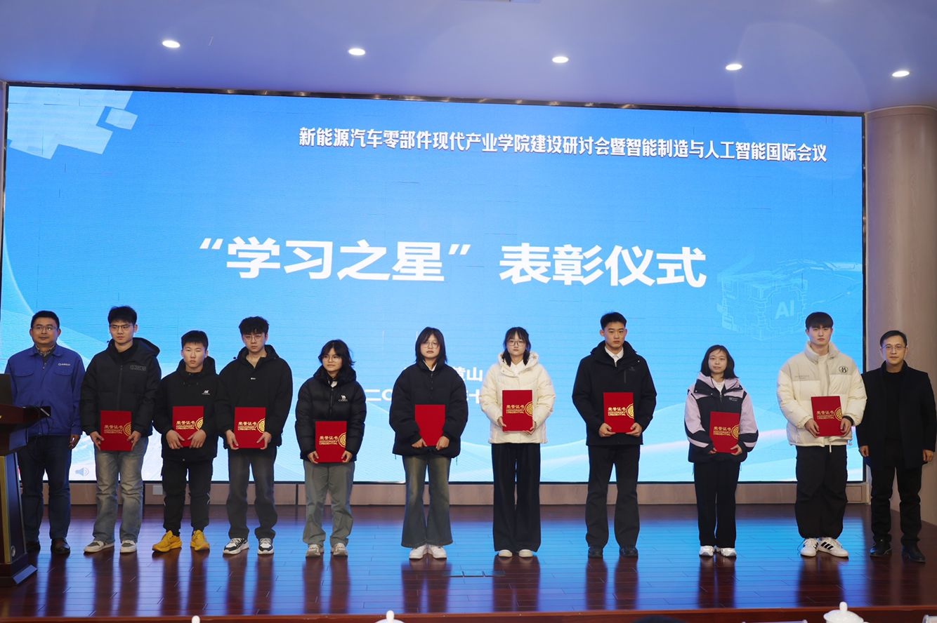 授聘仪式结束后,曹俊呈、徐晖为新能源汽车零部件现代产业学院微专业、机械设计制造及其自动化创新班、自动化创新班的优秀学子颁发了“学习之星”证书。学生代表杨雨濛表示,新能源汽车零部件现代产业学院是国家战略性新兴产业,承载着推动绿色发展、实现“双碳”目标的重要使命,让他们在学习中明确了奋斗方向,也深刻认识到肩负的责任与使命。