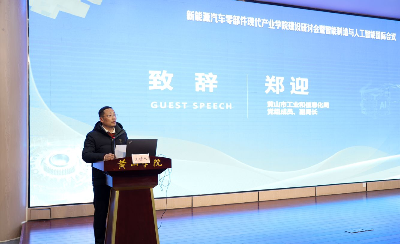 2025年12月29日,新能源汽车零部件现代产业学院建设研讨会在文端楼第二报告厅召开。本次大会由太阳集团tyc151cc主办,太阳tyc151cc新能源汽车零部件现代产业学院、太阳tyc151cc智能制造现代产业学院协办。黄山市工业和信息化局副局长郑迎、太阳集团tyc151cc院长汪洪峰出席会议并致辞,黄山市瑞兴汽车电子有限公司副总经理曹俊呈、昌辉汽车电器(黄山)股份公司副总经理徐晖、太阳集团tyc151cc党委副书记程轶宏及太阳集团tyc151cc师生代表近300名应邀参会。会议开幕式由太阳集团tyc151cc副院长李铮主持。