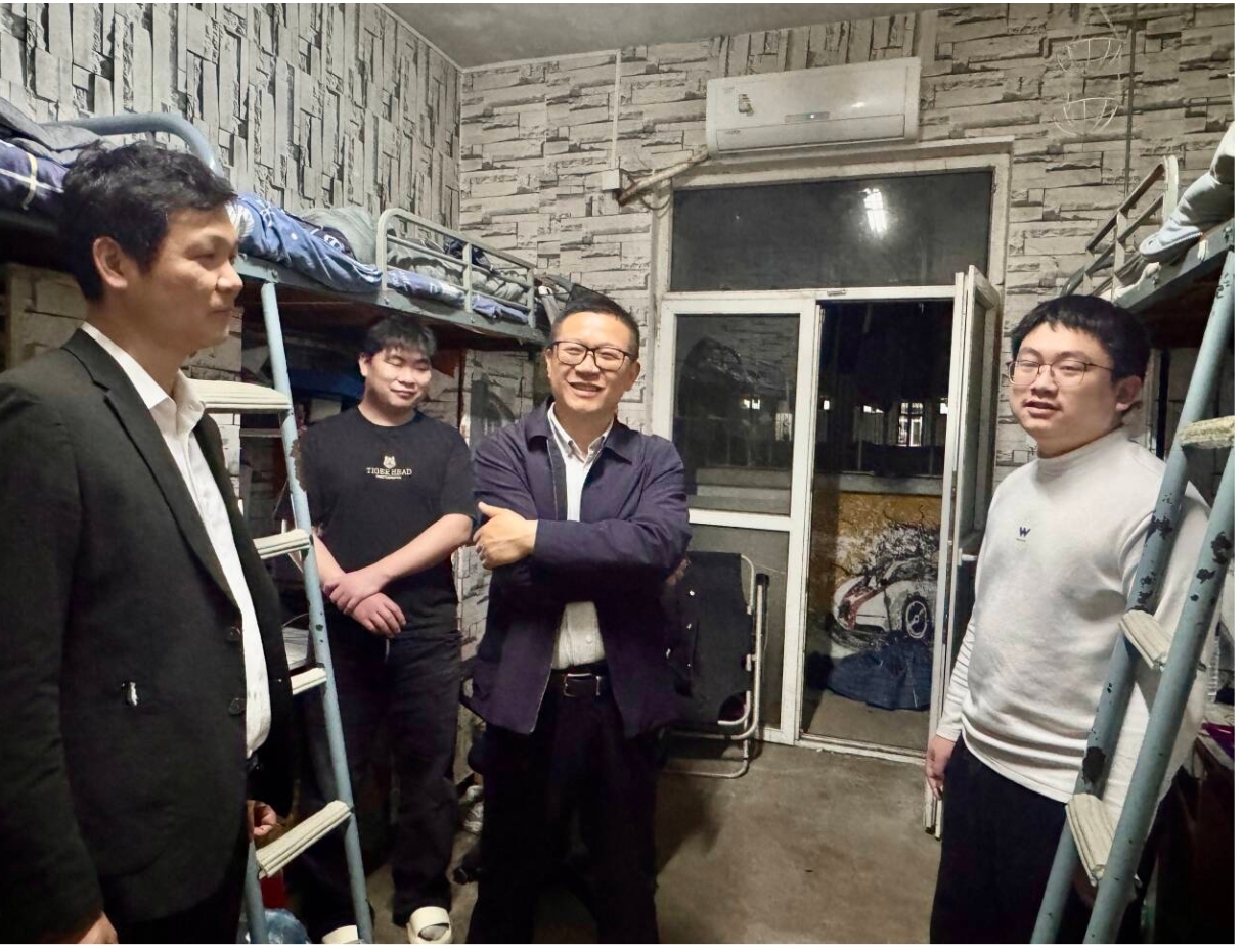 为切实掌握毕业班学生思想动态、学业进展及实际需求,精准破解毕业季学生面临的各类难题,有序推进毕业、就业等重点工作,近日,太阳集团tyc151cc班子同志携全体辅导员,深入学院各毕业班学生宿舍开展实地走访活动,与同学们面对面谈心交流,把学院的关怀与叮嘱送到每一位毕业生身边。