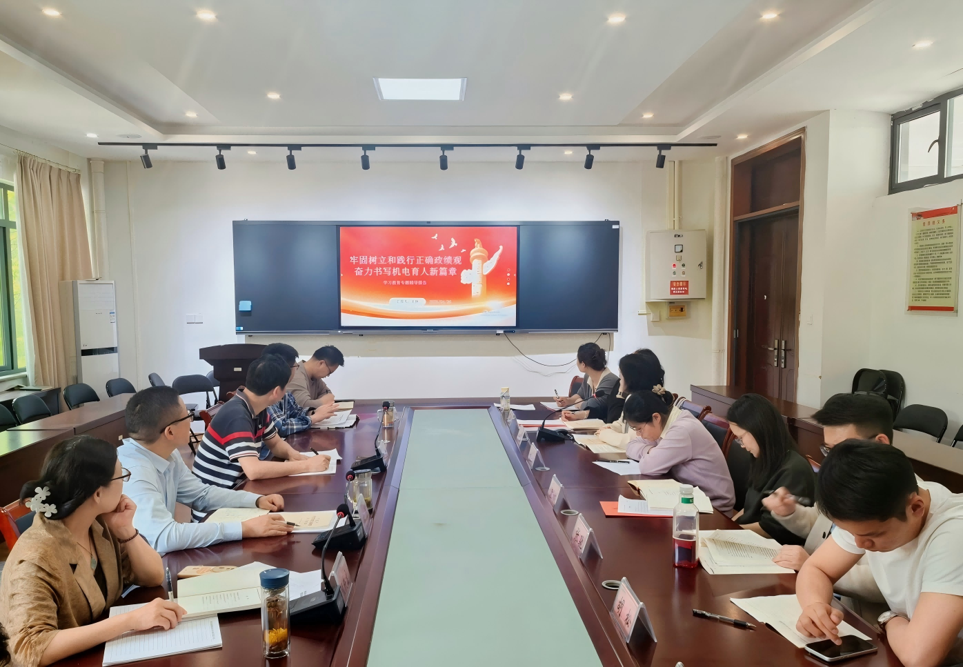 教工第一党支部书记王琳结合2026年安徽省高校教师党支部书记任职培训班学习所得,以“牢固树立和践行正确政绩观奋力书写机电育人新篇章”为题作专题辅导报告。报告深入阐释了树立和践行正确政绩观的重要意义及科学内涵,围绕高校教师如何树立和践行正确政绩观、以正确政绩观引领学院高质量发展两大方面,结合机电专业办学特色、学生培养实际和学院发展规划,进行了全面系统、深入浅出的讲解,为全体学员立足岗位履职尽责、推动学院各项工作提质增效提供了遵循。