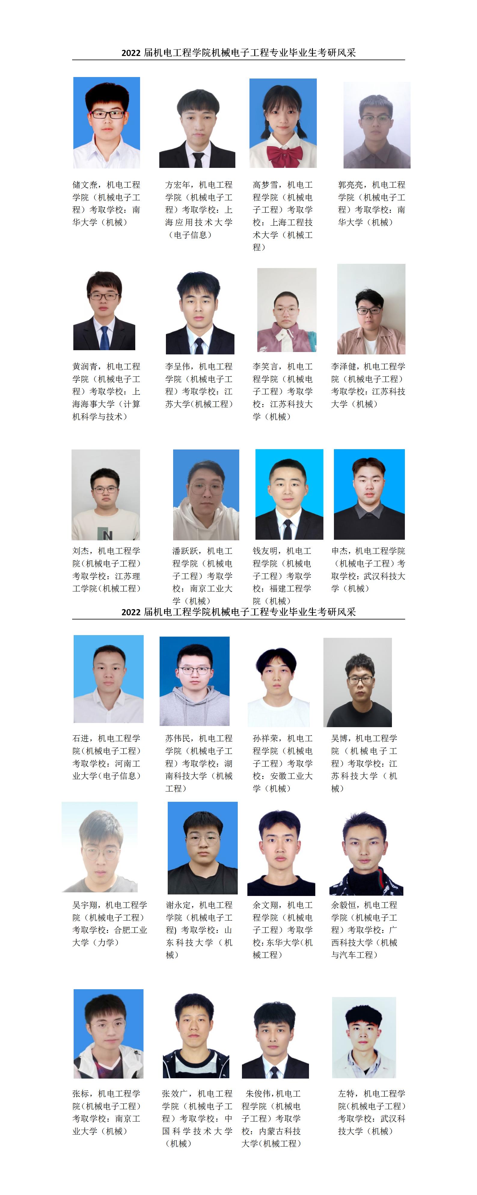 2022届机械电子工程专业毕业生考研风采