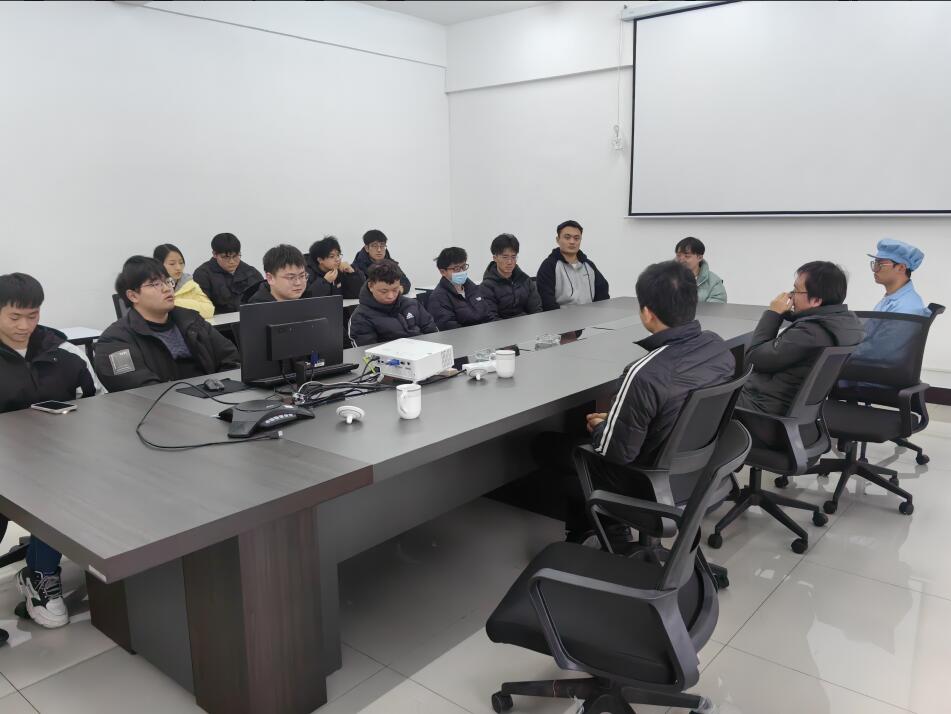 李铮首先对瑞兴汽车电子有限公司就学生生产实习工作付出的努力表达感谢,就实习情况特别是加班、请假、工资、安全等事关学生切身利益的问题做了详细了解,双方就实习暴露出来的问题做了沟通并提出了切实的解决方案;其次李铮还