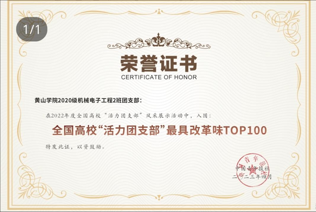 近三年,学院共有34人次在校级学生组织、社团中担任会长、部长以上职务。累计获得校级40余次文明班级、活力团支部等荣誉。其中,20机械电子2班荣获2023年国家级活力团支部称号。学院现拥有5个学生社团,其中,艺创手工坊、开拓者机器人协会获得五优社团称号。