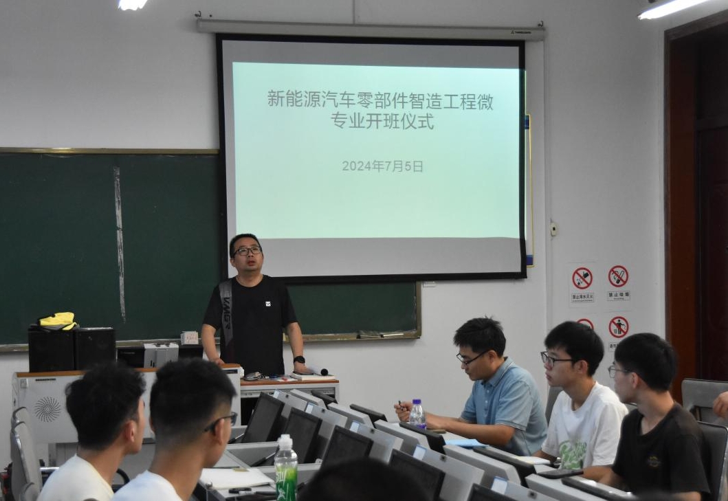 7月5日,太阳集团tyc151cc“新能源汽车零部件智造工程”微专业在文津楼4412教室举办开班仪式。教务处副处长孙克奎、太阳集团tyc151cc院长汪洪峰、自动化教研室主任赵磊、相关授课教师及首届微专业全体学员参加了开班仪式。仪式由汪洪峰主持。