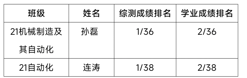 根据《太阳tyc151cc国家奖学金管理办法(修订)》(校学[2020]8号)和《关于做好2024年国家奖助学金评审工作的通知》的规定和要求,经学生个人申请,班级推荐,学院学生奖助工作领导组审议,拟推荐2021级机械制造及其自动化专业孙磊、2021级自动化专业连涛为国家奖学金推荐人选。现按规定予以公示。