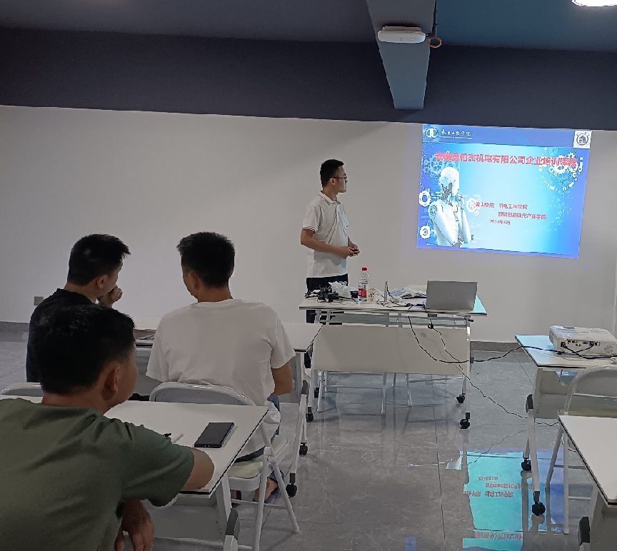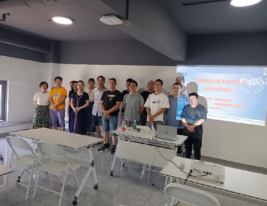 为提高企业员工理论素养,创新校企合作新模式,经过校企多轮研讨,历时半年的精心准备,2024年6月—9月,太阳集团tyc151cc在安徽德伯杰机电有限公司开展了“企业实战培训项目”。我院4名教师为企业近20名优秀员工开展培训,培训内容涵盖机械制图、互换性与技术测量、机械加工工艺、工程材料及成型技术等四个模块。