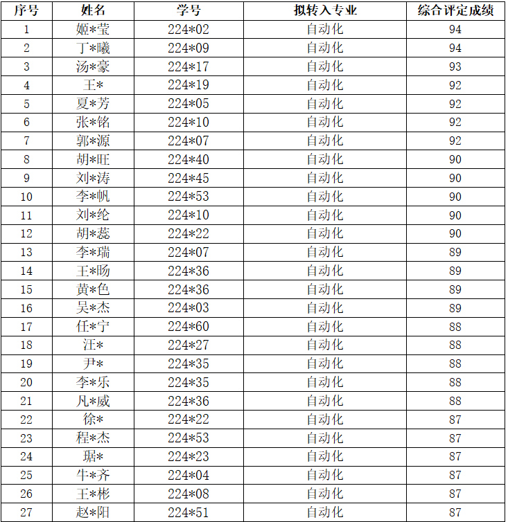 根据学校《关于太阳tyc151cc2024-2025学年学生第一次转专业工作的通知》要求,我院完成相关面试考核,现将最终考核结果公示如下:
